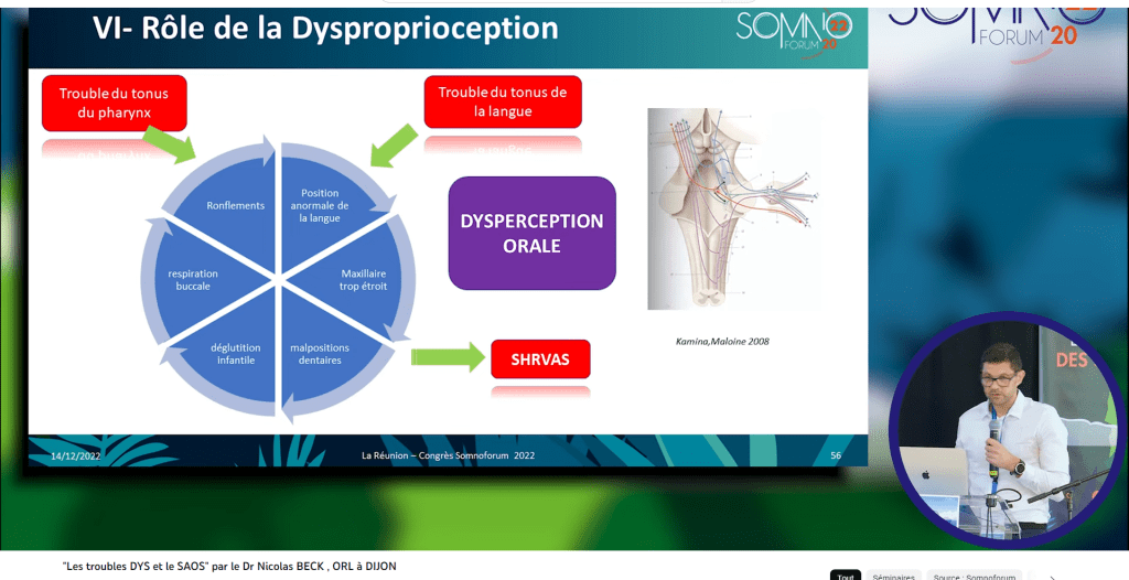 -Dans la deuxième, le Dr BECK ORL explore le lien entre troubles respiratoires du sommeil et troubles Dys/TDAH. Il aborde le rôle de la dysfonction proprioceptive dans l’apparition d’un SARVAS, et le lien entre troubles respiratoires du sommeil et troubles des apprentissages.