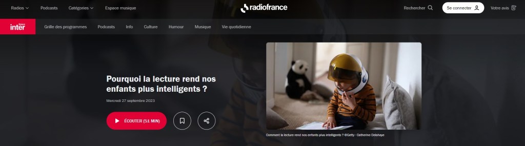 Après la parution de son livre, il s’est penché sur la littérature scientifique pour trouver quelles activités étaient bénéfiques pour développer l’intelligence et il en a trouvé de nombreuses : la musique, l’art, le sport, le jeu, mais la lecture se démarque de toutes « je n’en ai trouvé aucune qui ait des effets aussi larges, aussi profonds, aussi unanimes et surtout aussi transversaux que la lecture ». Cette particularité s’explique « parce que la lecture va vraiment affecter toutes les autres compétences. Elle a des impacts majeurs sur le langage, l’imagination, la créativité, l’expression écrite. Plus nous lisons, plus nous sommes capables de structurer notre pensée, d’organiser nos idées. Et plus les enfants lisent et plus ils sont à l’aise à l’oral aussi ». Lire développe l’intelligence, augmente le QI mais elle forge aussi notre intelligence sociale et émotionnelle : « les chercheurs parlent de simulation sociale et ce qui est intéressant, c’est que ce sont les mêmes réseaux neuronaux qui vont s’activer, la façon dont le cerveau va réagir à un sentiment, à une émotion réellement vécue qu’à une émotion vécue dans un bouquin ».