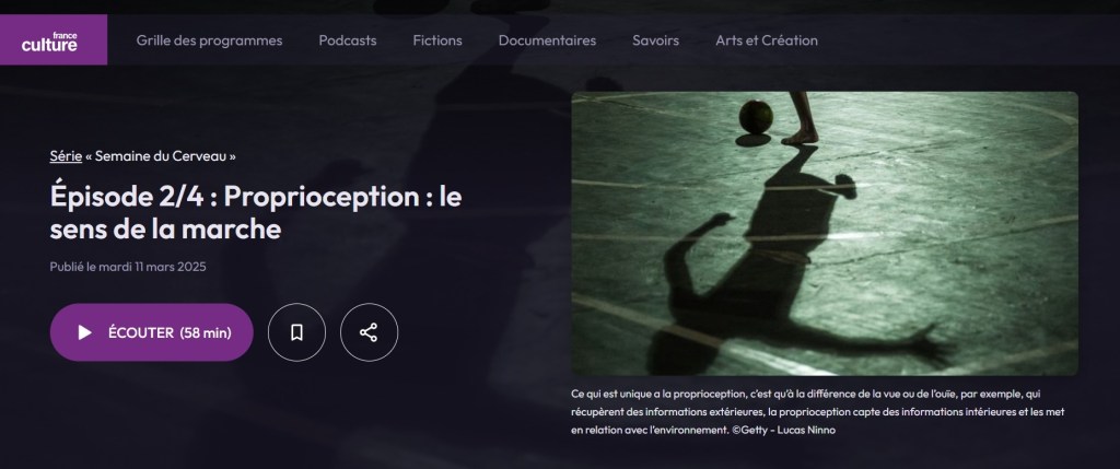 Dans le cadre de son émission La Science, CQFD, France Culture nous fait le grand plaisir de consacrer son second épisode de la semaine du cerveau à la proprioception. Tout doucement, ce sens pourtant essentiel, commence à sortir de l’ombre ! Merci France Culture !