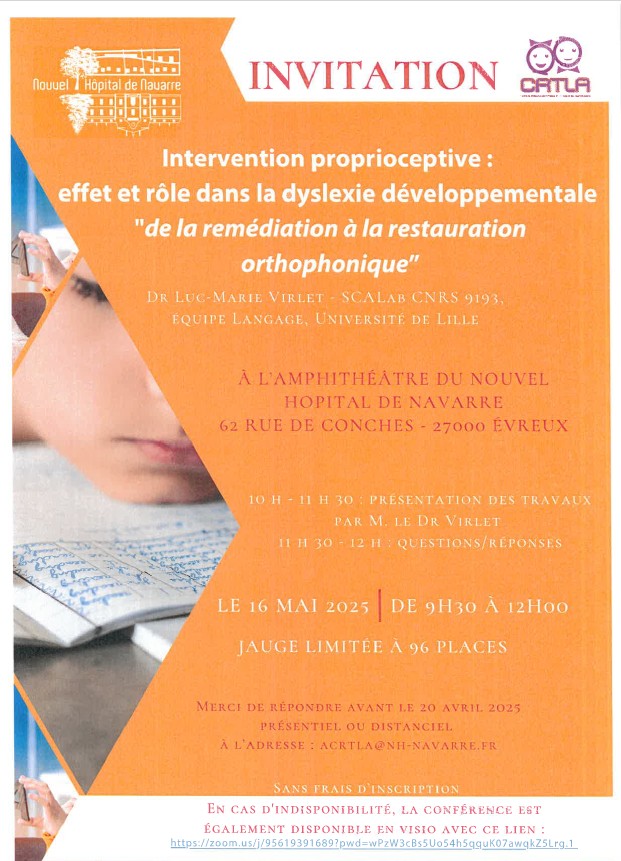 Sensoridys a le plaisir de vous annoncer que l’antenne du CHU de Rouen à Evreux va proposer une conférence du Dr Luc-Marie Virlet (SCALab CNRS 9193, équipe langage) ayant pour thème :