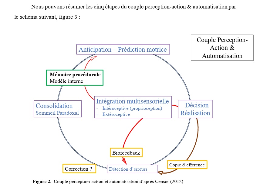 2) Nos résultats montrent l’effet de l’intervention proprioceptive dans les différentes étapes des processus d’automatisation du couple perception-action.