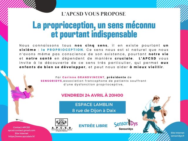 Le 24 avril à 20H, à Daix (Grand-Dijon), l’APCSD et Sensoridys vous invitent à une conférence gratuite, ouverte à tous :