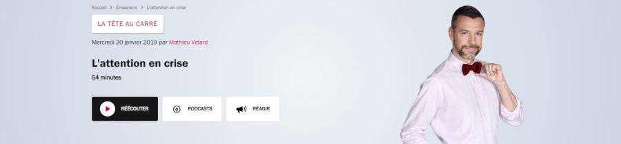 L'attention s’est imposée depuis une dizaine d’années comme un objet de recherche dans le champ des sciences sociales ou des neurosciences. Les invités de la Tête au carré nous expliquent que l’attention est toujours une interaction avec notre environnement. Jean-Philippe Lachaux Directeur de recherche Inserm au Centre de recherche en neurosciences de Lyon Yves Citton Professeur de …